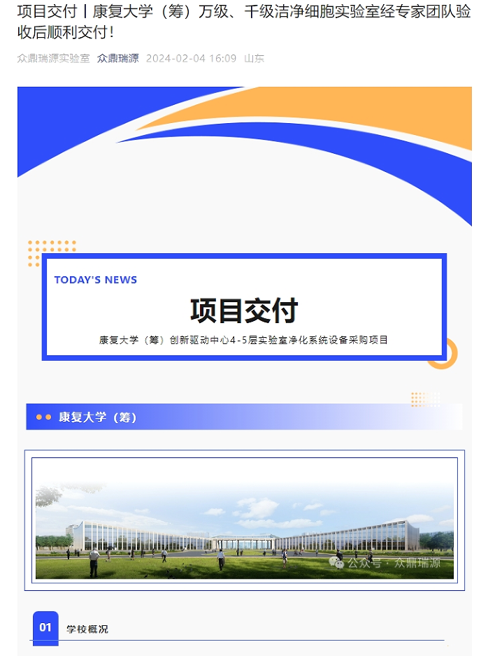 项目交付丨康复大学(筹)万级、千级洁净细胞实验室经专家团队验收后顺利交付!