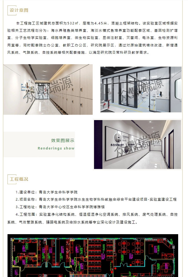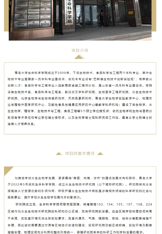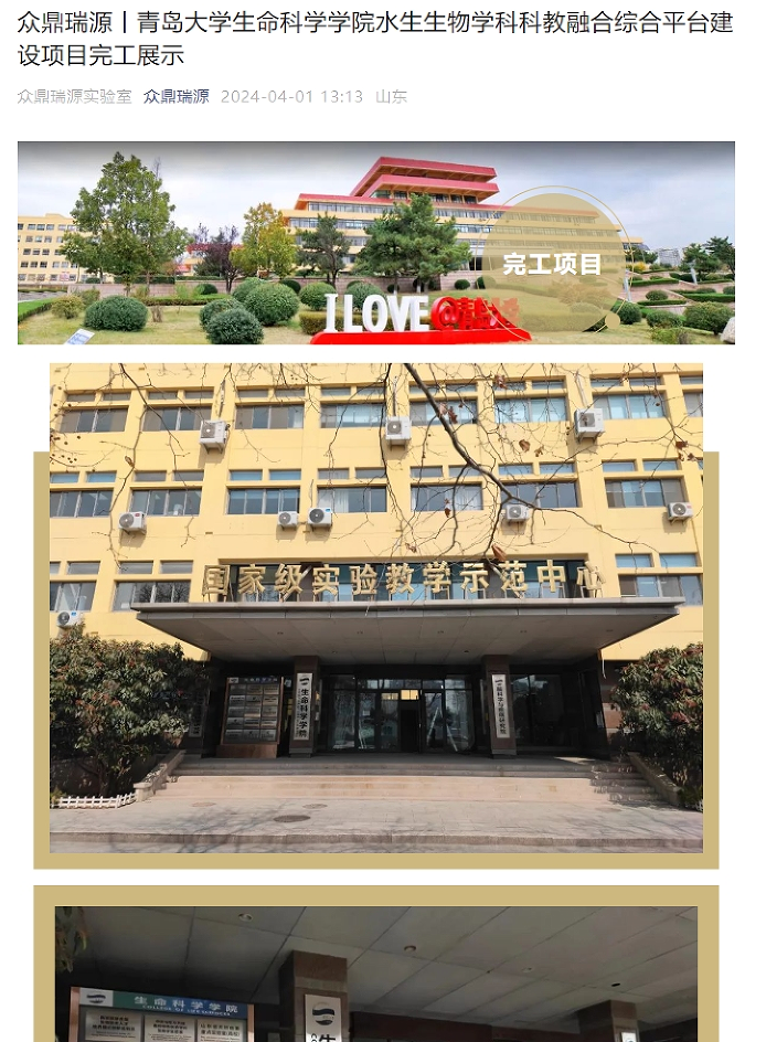众鼎瑞源丨青岛大学生命科学学院水生生物学科科教融合综合平台建设项目完工展示